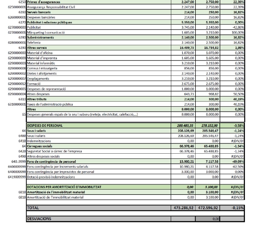 S’han actualitzat les despeses previstes pel personal en l’exercici 2023 ja que les noves incorporacions de personal s’han vist retardes. La nova persona tècnica s’ha incorporat durant el mes d’abril i la persona administrativa començarà a mitjans de maig.