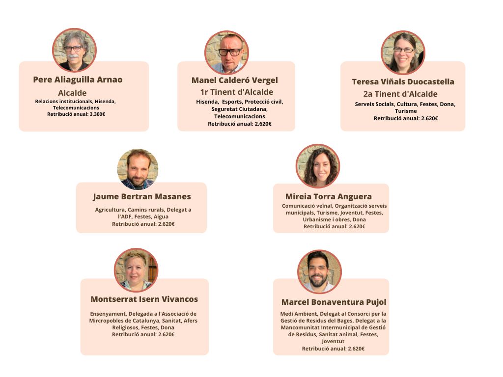Aquí trobaràs els perfils i trajectòries professionals dels representants polítics locals i dels titulars dels òrgans directius de l'ens i dels organismes vinculats. També hi ha les seves dades de contacte i les seves retribucions. En el cas dels alts càrrecs, també les declaracions d'activitats, patrimonials i interessos.