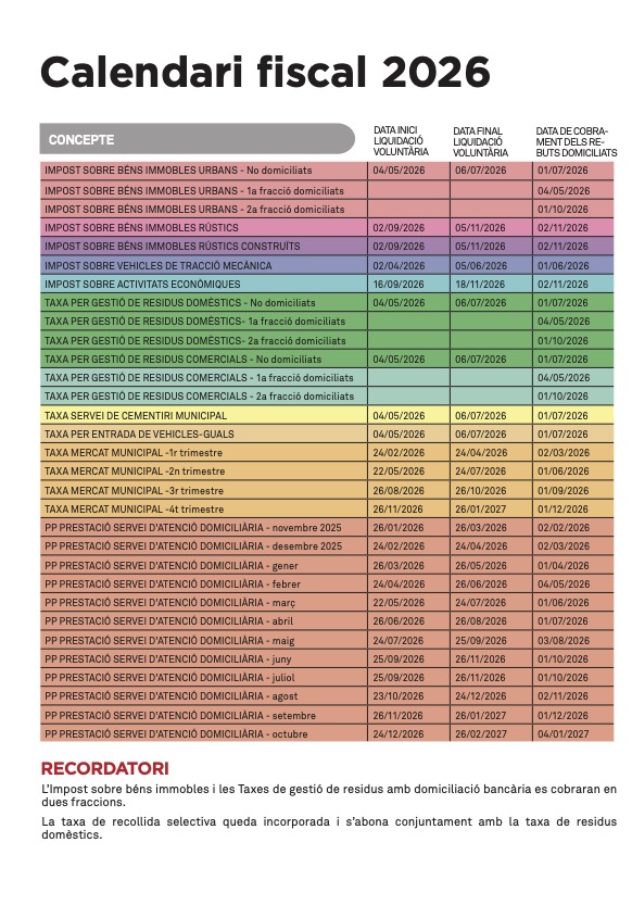 Consulteu el decret d'aprovació del calendari fiscal 2026 i també els calendaris fiscals dels últims anys: