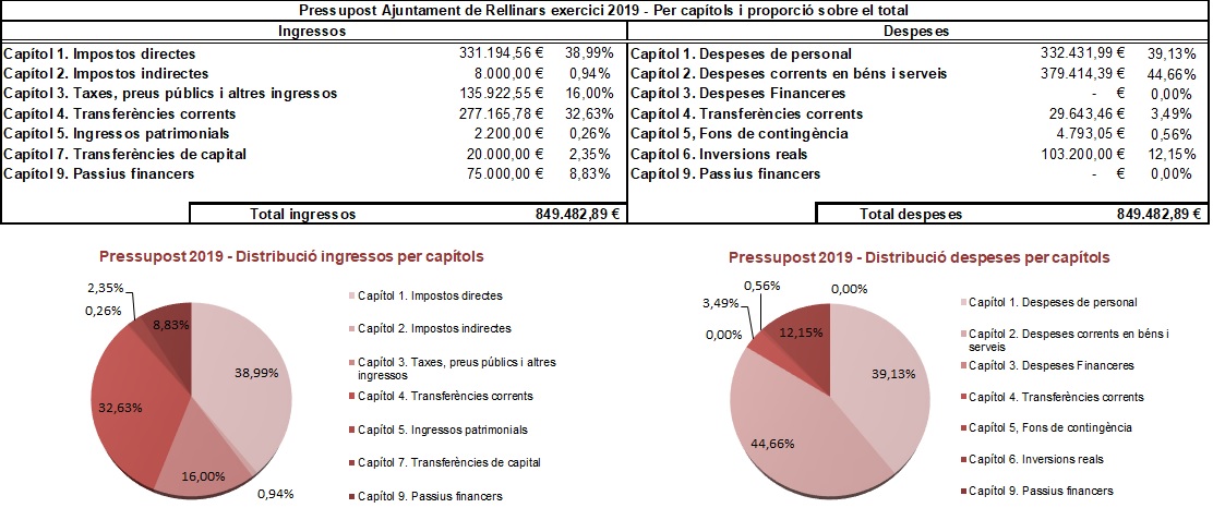 PRESSUPOST PER CAPÍTOLS - EXERCICI 2019