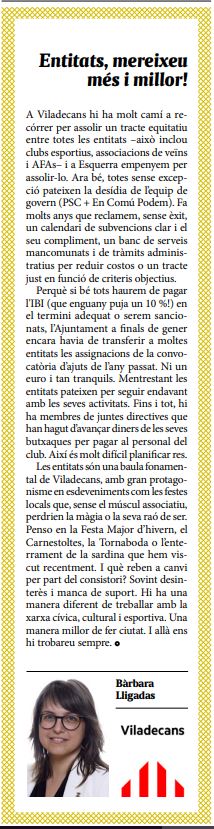 | Juny | Viladecans necessita un canvi d'aires |