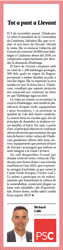 | Desembre | Tot a punt per a LLevant |
