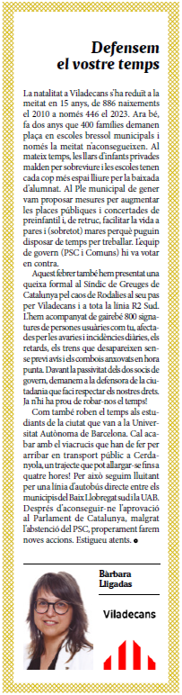 | Març | Defensem el vostre temps |