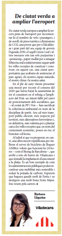 | Setembre | De ciutat verda a ampliar l'aeroport |