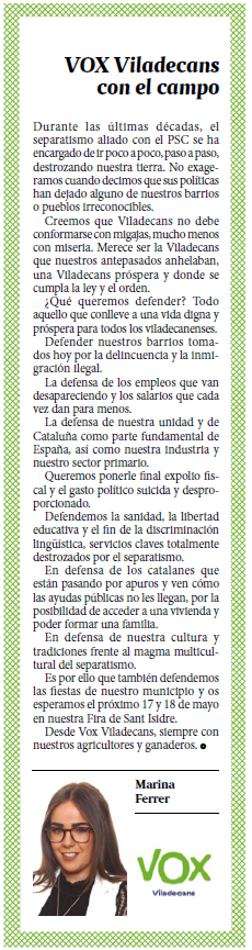| Maig | VOX Viladecans con el campo |