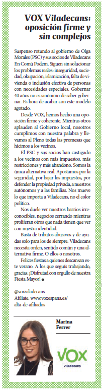 | Setembre | VOX Viladecans: oposición firme y sin complejos |