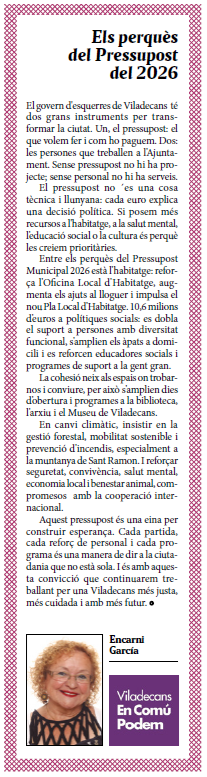 | Desembre | Els perquès del Pressupost del 2026 |