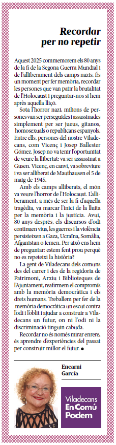 | Maig | Recordar per no repetir |