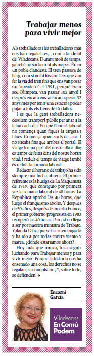 | Març | Trabajar menos para vivir mejor |