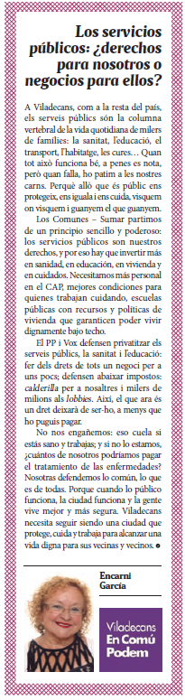 | Setembre | Los servicios públicos: ¿derechos para nosotros o negocios para ellos? |