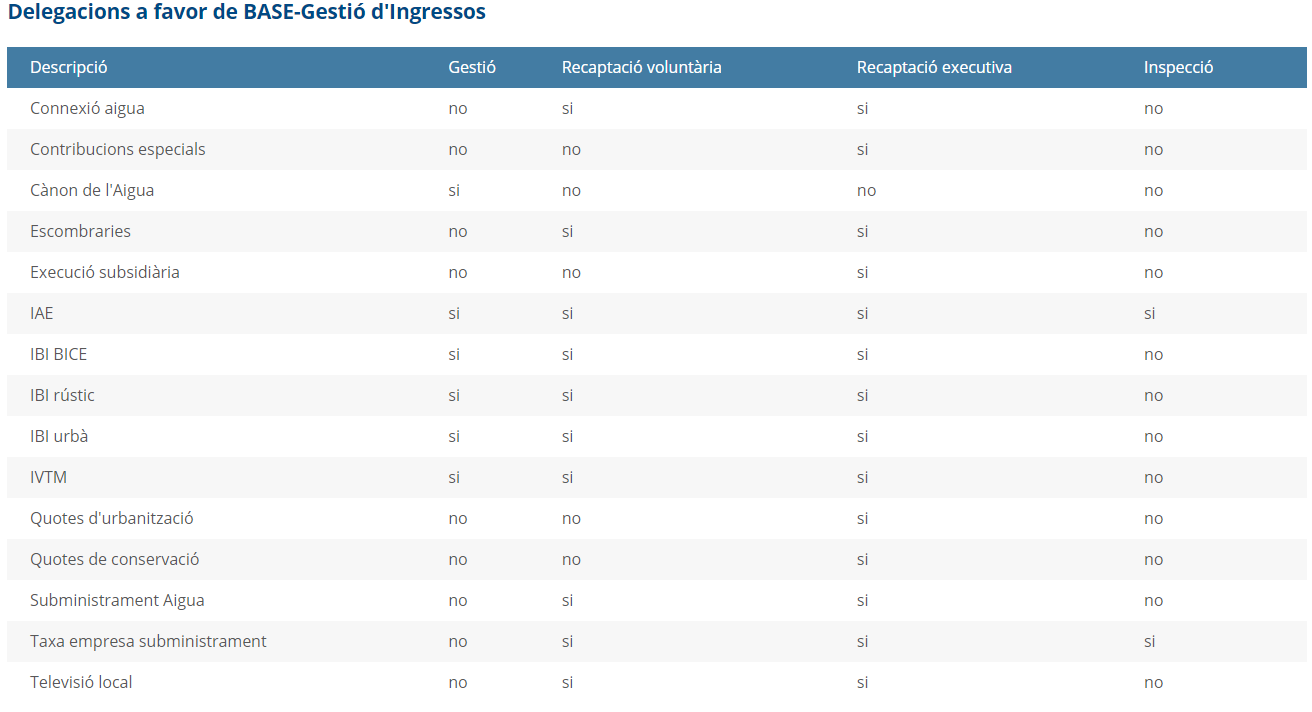 Tota la informació sobre la gestió tributària pot consultar-se a la Base Gestió d'ingressos.