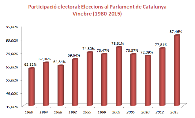 Descripció En aquest apartat es poden consultar els resultats de les eleccions al Parlament de Catalunya al municipi de Vinebre des de 1980 fins a l'actualitat. També es pot consultar l'evolució de la participació electoral al llarg de les diverses convocatòries. Les dades són extretes del Departament de Governació i Relacions Institucionals de la Generalitat de Catalunya, concretament de l'Àrea de Processos Electorals i Consultes Populars.