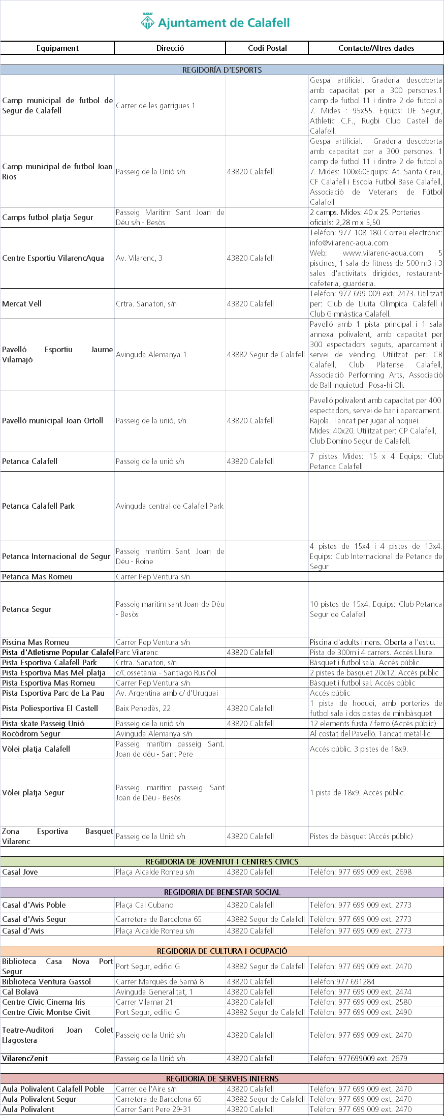 Este apartado detalla la relación de equipamientos de titularidad municipal que la ciudadanía tiene a su disposición. Podrás ver la dirección y la manera de disfrutarlos.