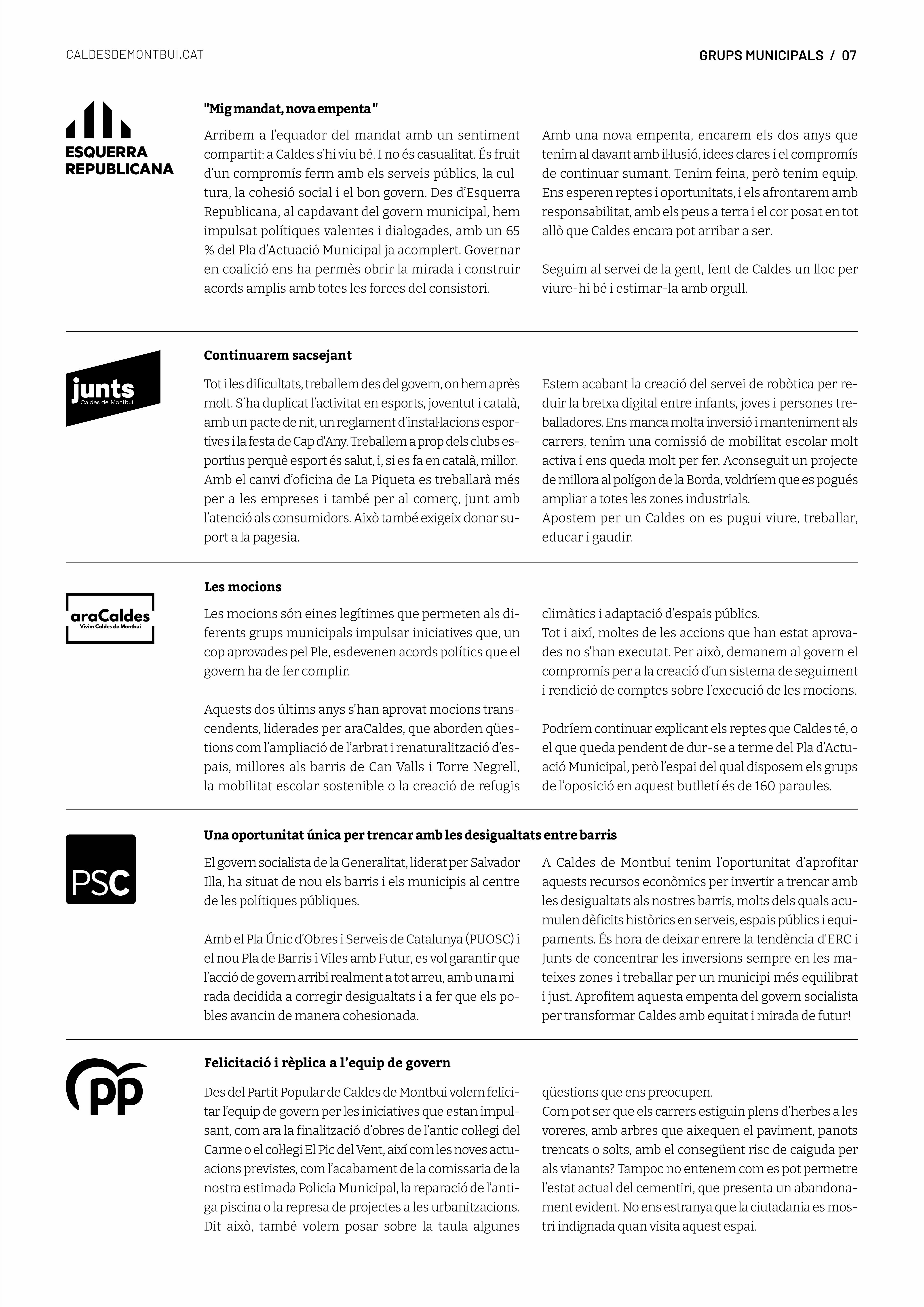 • L'Informatiu Municipal "Casa de la Vila" es publica semestralment i recull les opinions dels grups polítics municipals a la secció "Els grups municipals opinen":