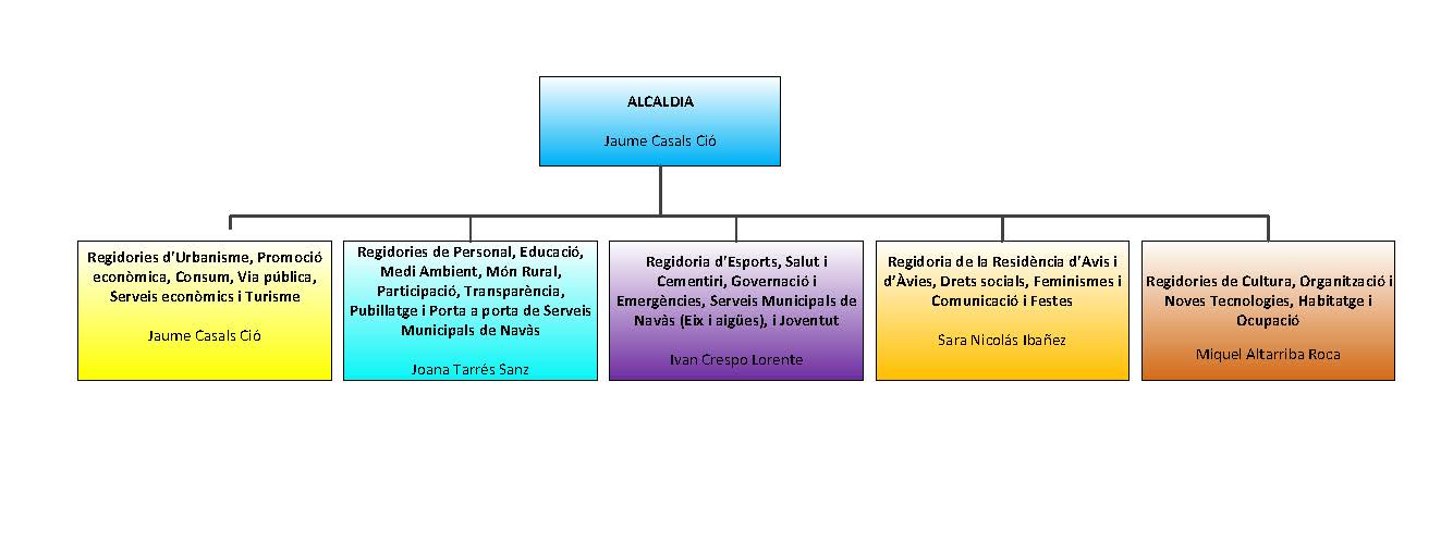 2. Podeu accedir a l'organigrama de la Corporació en la legislatura 2019-2023 en el següent enllaç.